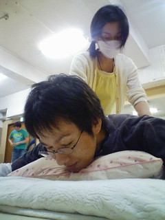 しのぶの施術を受けるジャスティン。